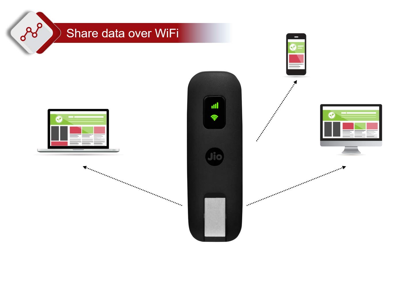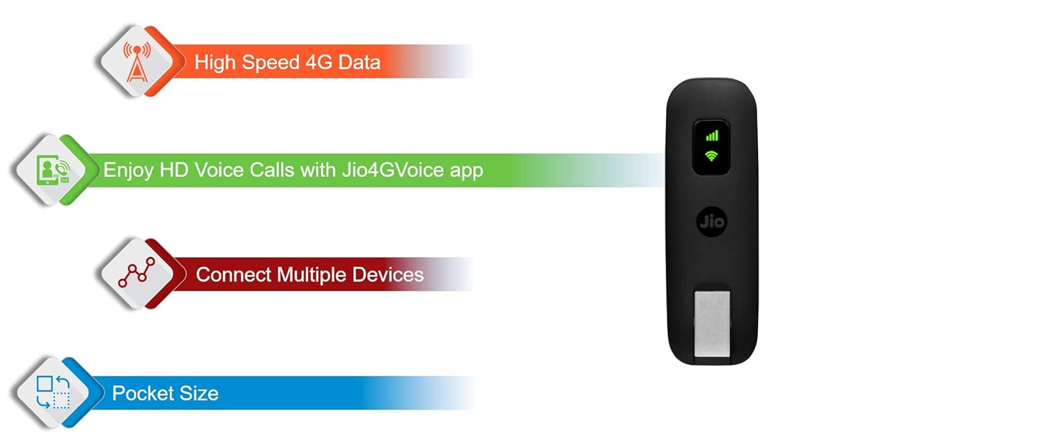The New Jio Dongle is Here to Ensure You Enjoy High Speed Internet Powered by the Jio 4G Network. So Go Ahead and Connect Your Smartphone to the JioFi Device and Groove to Your Favorite Music, or Stream a Movie on the Go. There is Never a Dull Moment with the JiO Dongle JDR740 Wireless Router, All Thanks to its Blazing Fast Connectivity Over a Wide Range of Devices.