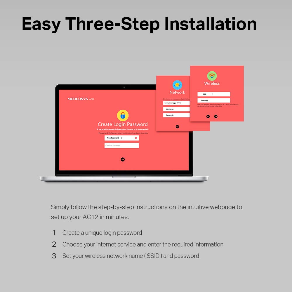 With no need for complicated configuration, you can simply follow the step-by-step instructions on the intuitive webpage to set up your AC12 in minutes.
